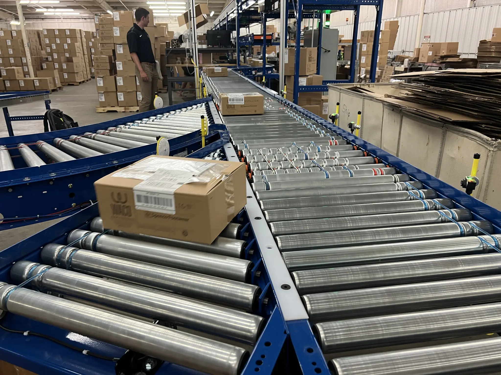 - High-speed MHS takeaway conveyor leading to dock doors